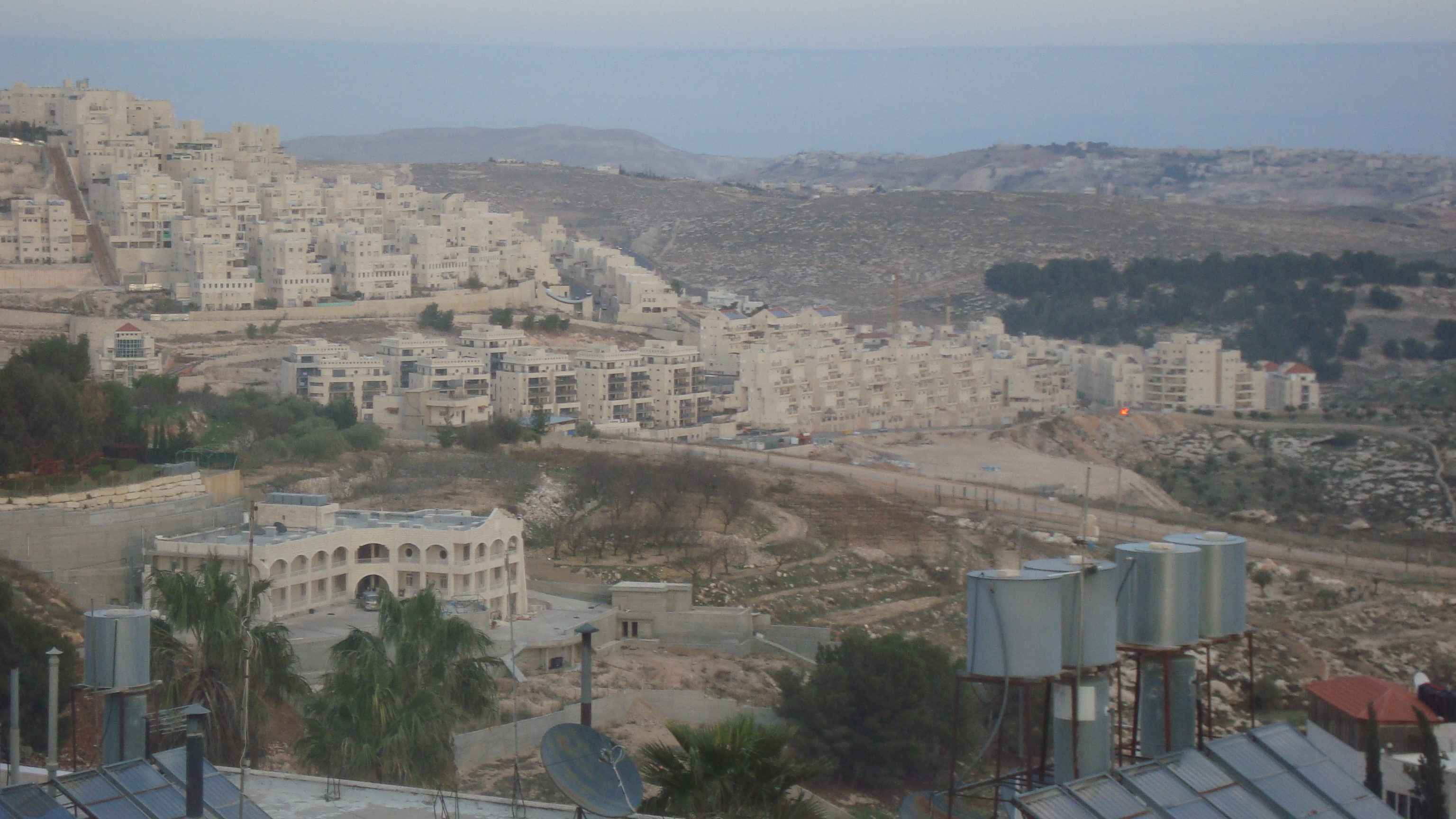 Har Homa (background) - Separation Barrier (midground) - Bethlehem (foreground) - 12 Jan. 2011 - Photo: Sherry Ann