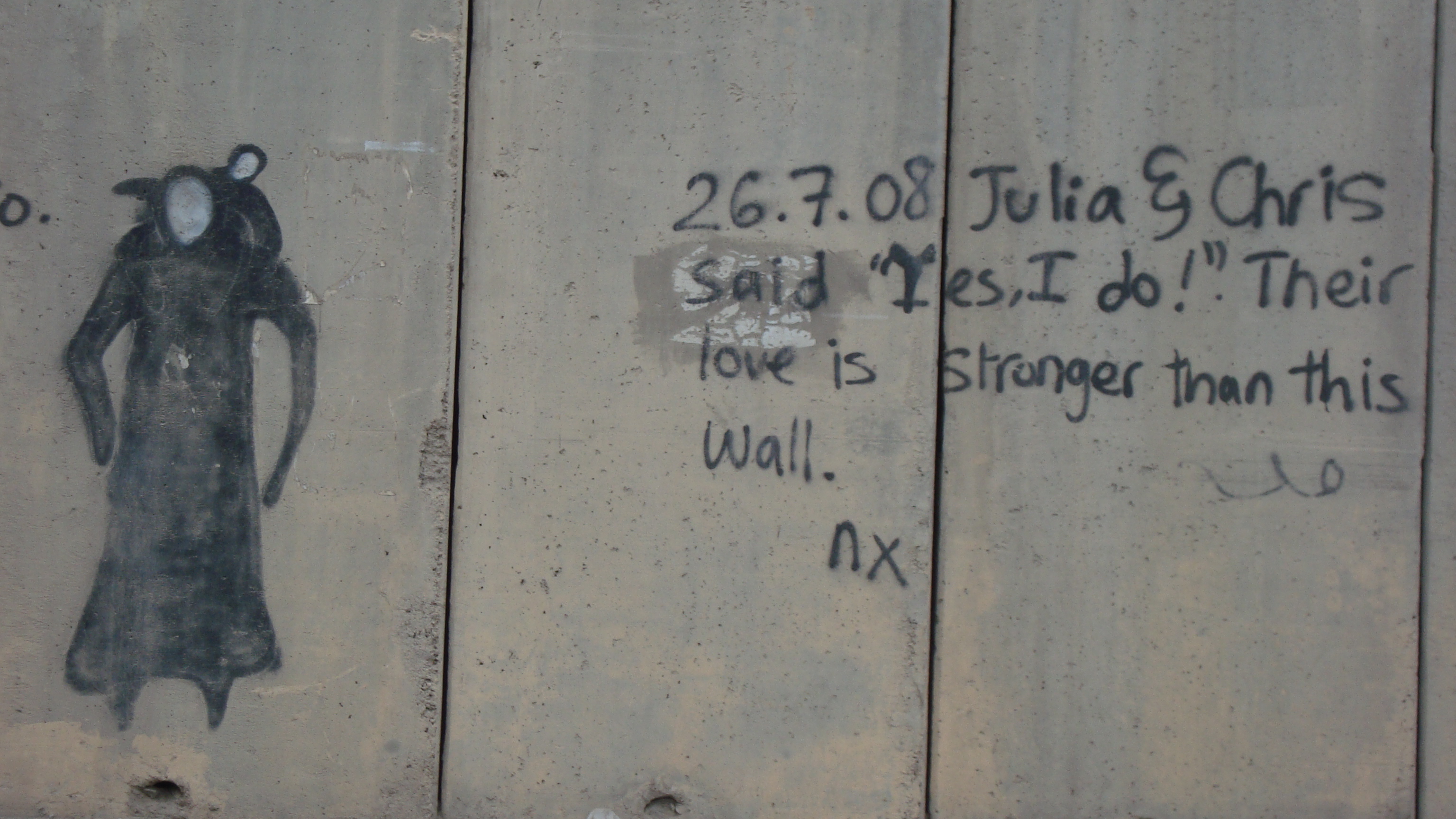 "Love is stronger than this wall." - Ar Ram, West-Bank side of Separation Wall, near Qalandiya Checkpoint - 6 Jan. 2011 - Photo: Sherry Ann